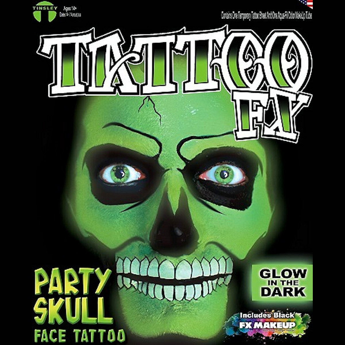 Party Skull Glow in the Dark Face Tattoo Genuine Tinsley Transfer